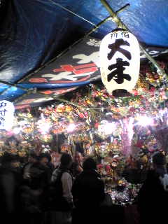 商売繁盛を願ってきらびやかな熊手を買っていくお客さんをみているのもなかなか楽しい。