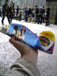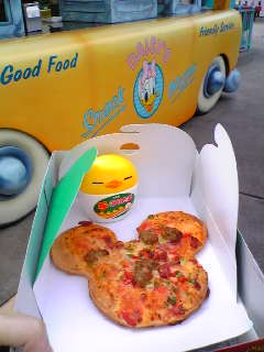 ミッキーピッツァを食べながら