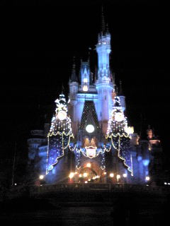 闇に浮かび上がるシンデレラ城。
